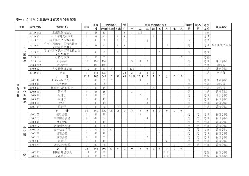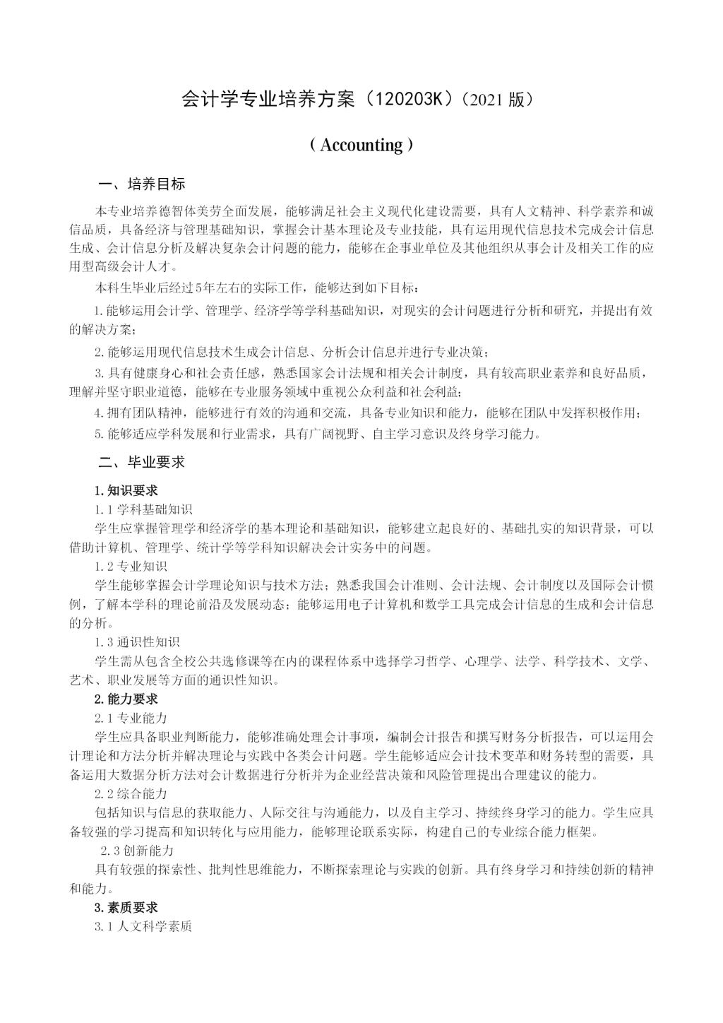 会计学专业培养方案
