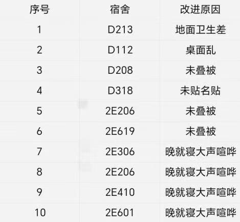 为进一步落实“好习惯工程”相关工作要求,扎实推进学院学风建设十项措施,营造安全、文明、积极、有序的育人环境,工商管理学院持续开展学生寝室内务检查与早、晚课巡查工作。现将第十周检查情况通报如下: