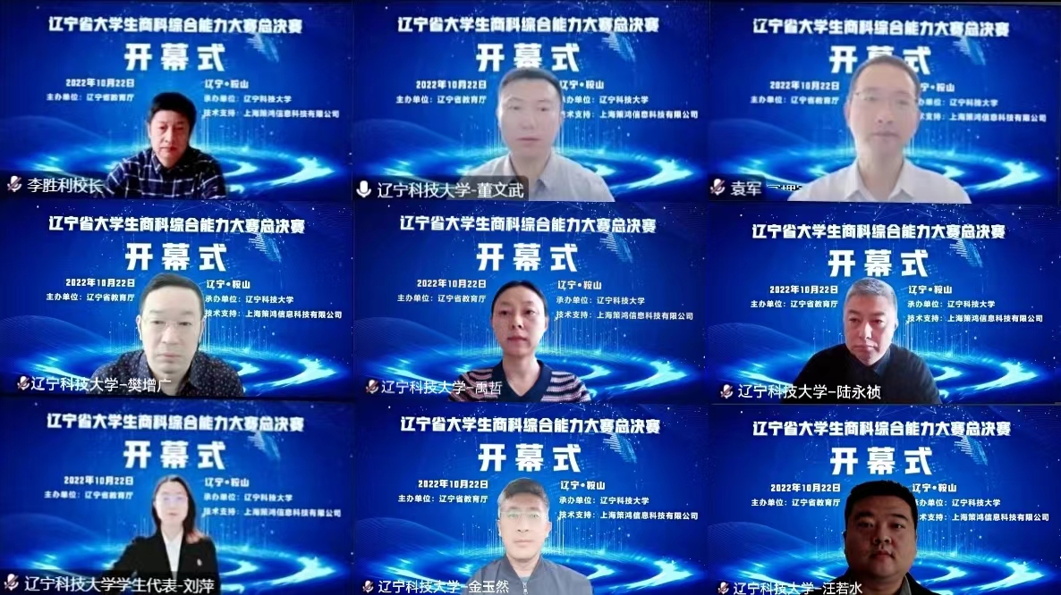 2022年10月22日,由辽宁省教育厅主办、乐鱼(中国)官方网站承办的首届“辽宁省大学生商科综合能力大赛”总决赛圆满收官。受疫情影响,本次大赛采用线上竞赛的形式,由上海策鸿信息科技有限公司提供竞赛平台和技术支持。赛事自2022年4月启动以来,吸引了来自辽宁大学、大连交通大学、leyu、辽宁工程技术大学、大连民族大学、渤海大学等多所高校的众多学子积极参与,经过各高校的校内初赛选拔,按照每所高校限报10组的规则,最终有省内30所高校的230支队伍进入了总决赛。
