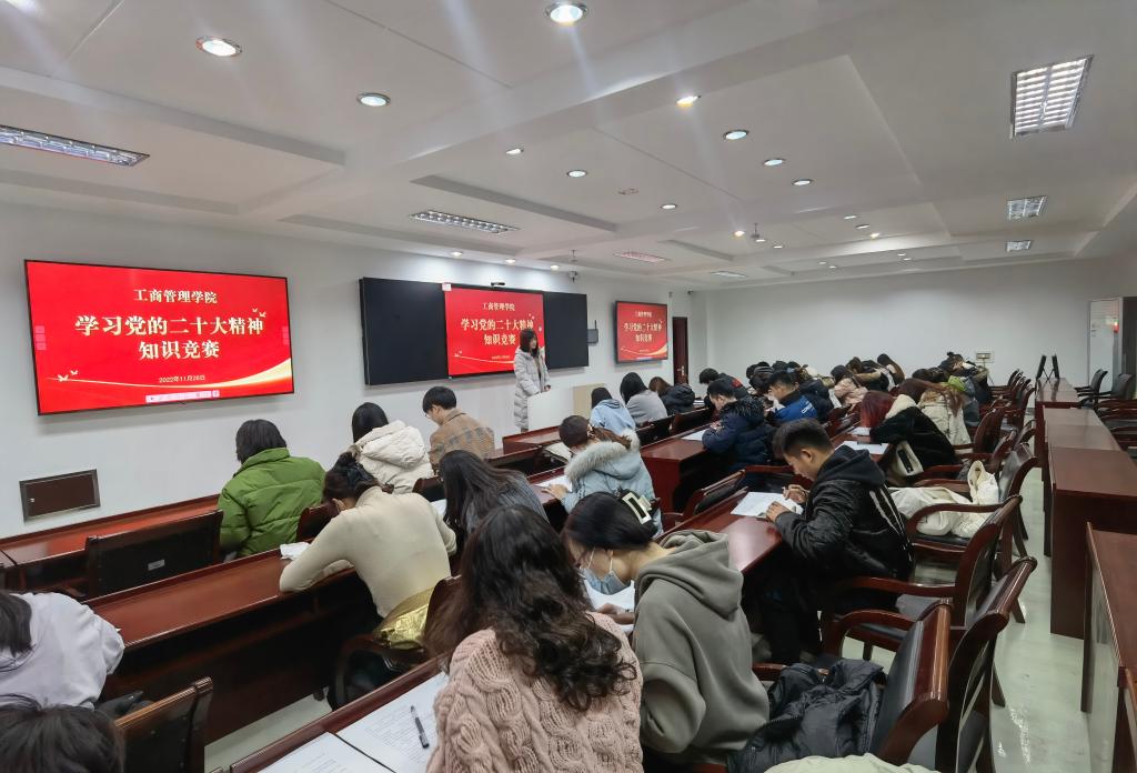 本次竞赛是学校“学习党的二十大精神知识竞赛”的初赛环节。试题内容主要围绕党的二十大报告、新修订的《中国共产党章程》等政治理论常识和党建业务知识设置。管理学院全体师生党员参赛,教工党员依托“考试宝”平台通过线上方式进行,学生党员通过线下笔试方式开展。