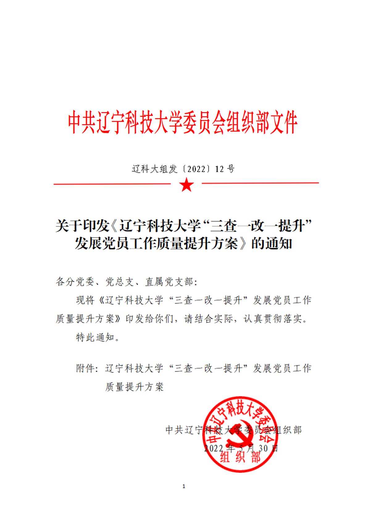 关于印发《leyu“三查一改一提升”发展党员工作质量提升方案》的通知